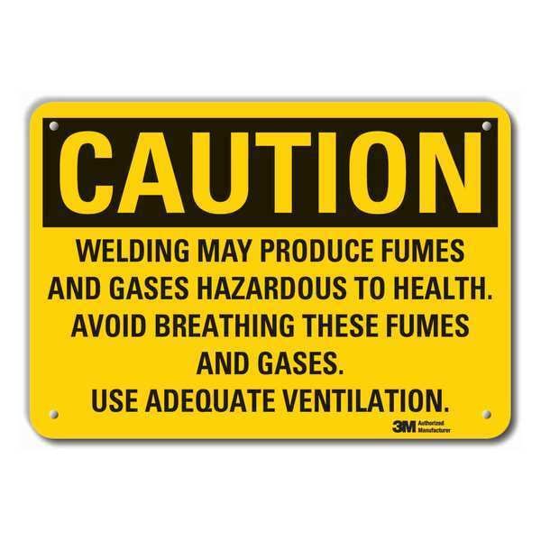 Caution Sign, Vertical Rectangle, Number of Printed Sides 1, English, Sign Format Traditional OSHA, Sign Legend Welding May Produce Fumes And Gases Hazardous To Health. Avoid Breathing These Fumes And Gases. Use Adequate Ventilation., Sign Legend Background Color Yellow, Sign Legend Style Text