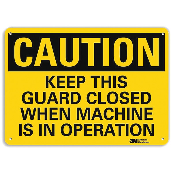 Caution Sign, Vertical Rectangle, Number of Printed Sides 1, English, Sign Format Traditional OSHA, Sign Legend Keep This Guard Closed When Machine Is In Operation, Sign Legend Background Color Yellow, Sign Legend Style Text