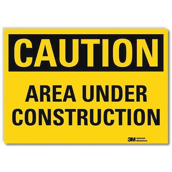 Caution Sign, Vertical Rectangle, Number of Printed Sides 1, English, Sign Format Traditional OSHA, Sign Legend Area Under Construction, Sign Legend Background Color Yellow, Sign Legend Style Text