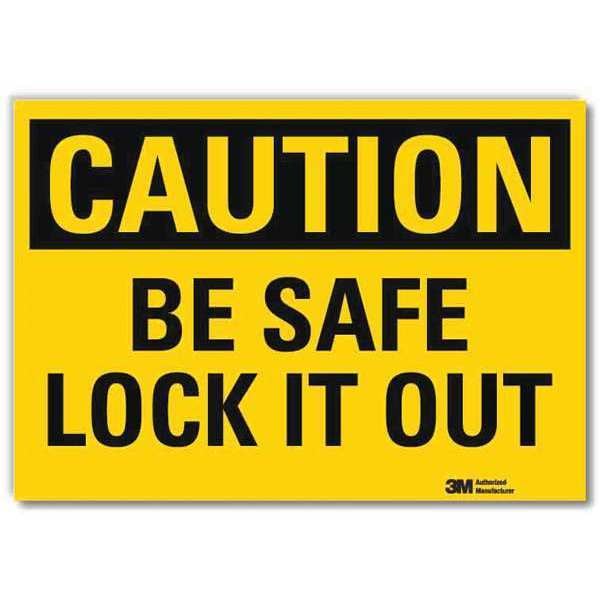 Caution Sign, Vertical Rectangle, Number of Printed Sides 1, English, Sign Format Traditional OSHA, Sign Legend Be Safe Lock It Out, Sign Legend Background Color Yellow, Sign Legend Style Text