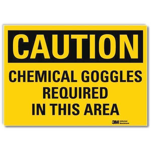 Caution Sign, Vertical Rectangle, Number of Printed Sides 1, English, Sign Format Traditional OSHA, Sign Legend Chemical Goggles Required In This Area, Sign Legend Background Color Yellow, Sign Legend Style Text