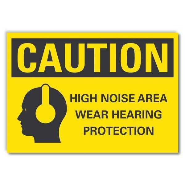 Caution Sign, Horizontal Rectangle, Number of Printed Sides 1, English, Sign Format ANSI/OSHA Format, Sign Legend High Noise Area Wear Hearing Protection, Sign Legend Background Color Yellow, Sign Legend Style Symbol and Text