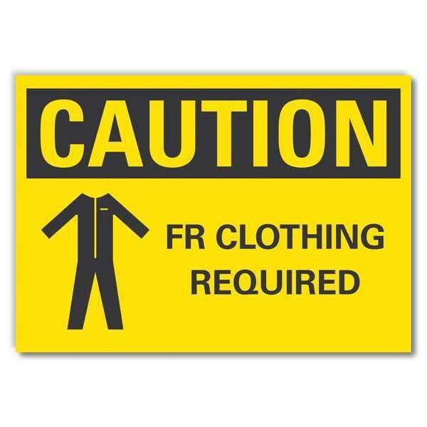 Caution Sign, Horizontal Rectangle, Number of Printed Sides 1, English, Sign Format ANSI/OSHA Format, Sign Legend FR Clothing Required, Sign Legend Background Color Yellow, Sign Legend Style Symbol and Text