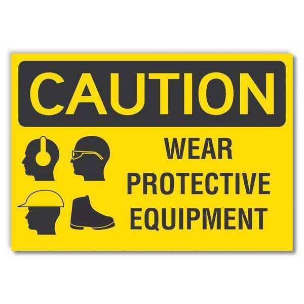 Ppe Caution Reflective Label, Horizontal Rectangle, Number of Printed Sides 1, English, Sign Format ANSI/OSHA Format, Sign Legend Wear Protective Equipment, Sign Legend Background Color Yellow, Sign Legend Style Symbol and Text