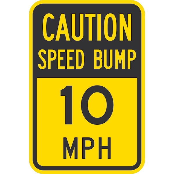 Caution Speed Bump 10 Mph, 12x18, Diamond Grade, Yellow