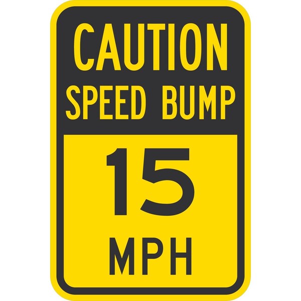 Caution Speed Bump 15 Mph, 12x18, Diamond Grade, Yellow