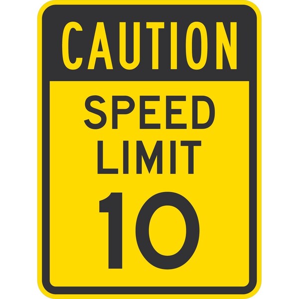 Caution Speed Limit 10, 24x30, Engineer Grade, Yellow