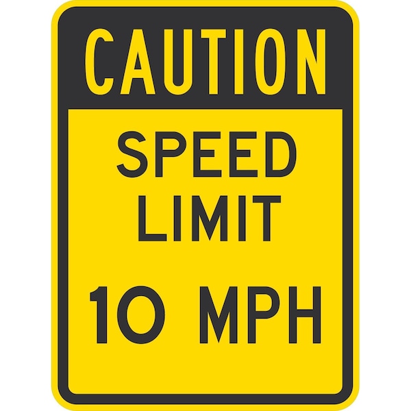 Caution Speed Limit 10 Mph, 18x24, High Intensity Prismatic, Yellow