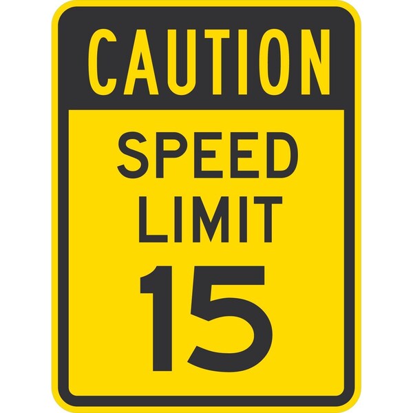 Caution Speed Limit 15, 18x24, Non-Reflective, Yellow