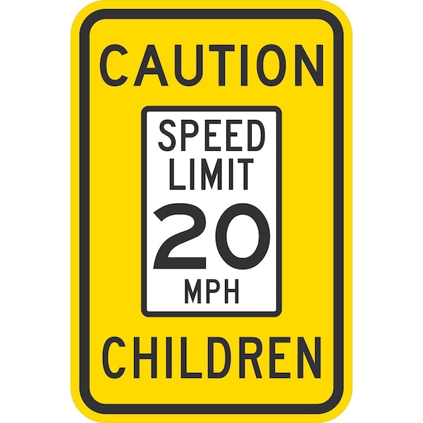 Caution Speed Limit 20 MPH Children, 12x18, Non-Reflective, Yellow