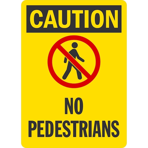 Caution (Sym) No Pedestrians, 10x14, Non-Reflective, Yellow