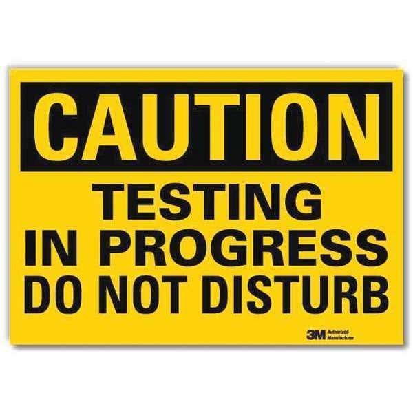 Safety Sign, Vertical Rectangle, Number of Printed Sides 1, English, Sign Format Traditional OSHA, Sign Legend Testing In Progress Do Not Disturb, Sign Legend Background Color Yellow, Sign Legend Style Text