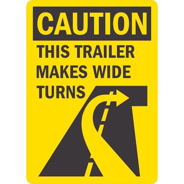 Caution This Trailer Makes Wide Turns (W/Graphic), 5x7, Non-Reflective, Yellow