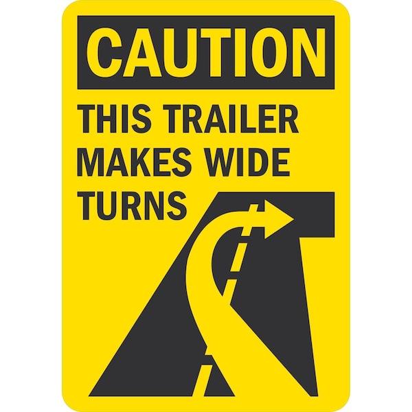 Caution This Trailer Makes Wide Turns (W/Graphic), 7x10, Engineer Grade, Yellow