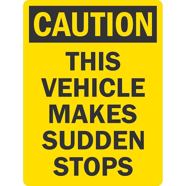 Caution This Vehicle Makes Sudden Stops, 18x24, Engineer Grade, Yellow