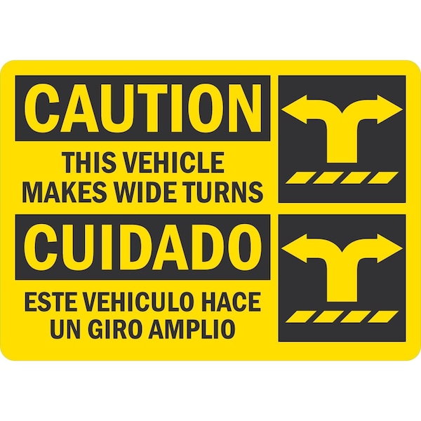 Caution This Vehicle Makes Wide Turns (W/Sym), 7x5, Non-Reflective, Yellow