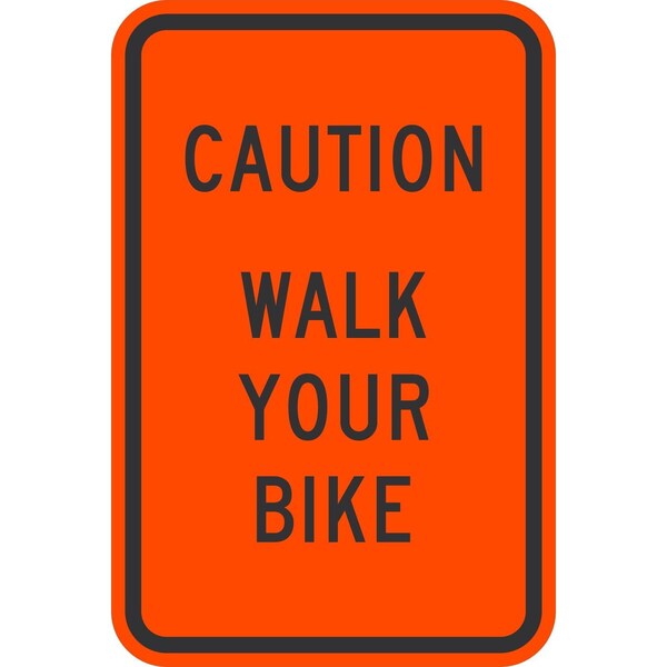 Caution Walk Your Bike, 12x18, Diamond Grade, Orange