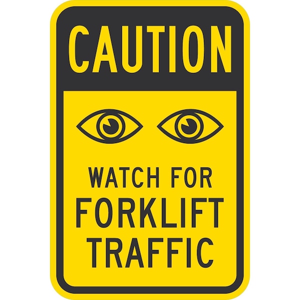 Caution Watch For Forklift Traffic (Watching Eyes Sym), 12x18, Non-Reflective, Yellow