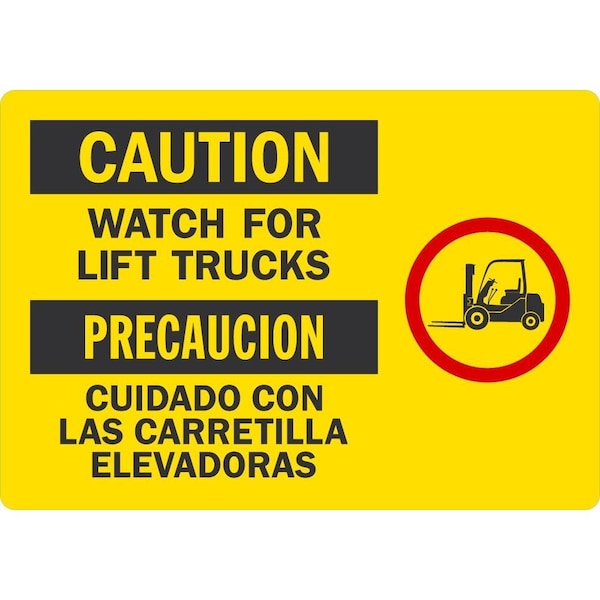 Caution Watch For Lift Trucks (W/Sym), 5x3.5, Non-Reflective, Yellow