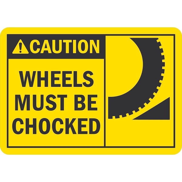 Caution Wheels Must Be Chocked (W/Sym), 10x7, Non-Reflective, Yellow
