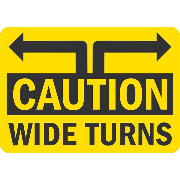 Caution Wide Turns (W/Arrow), 10x7, Engineer Grade, Yellow