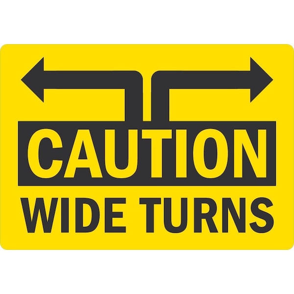 Caution Wide Turns (W/Arrow), 5x3.5, Non-Reflective, Yellow