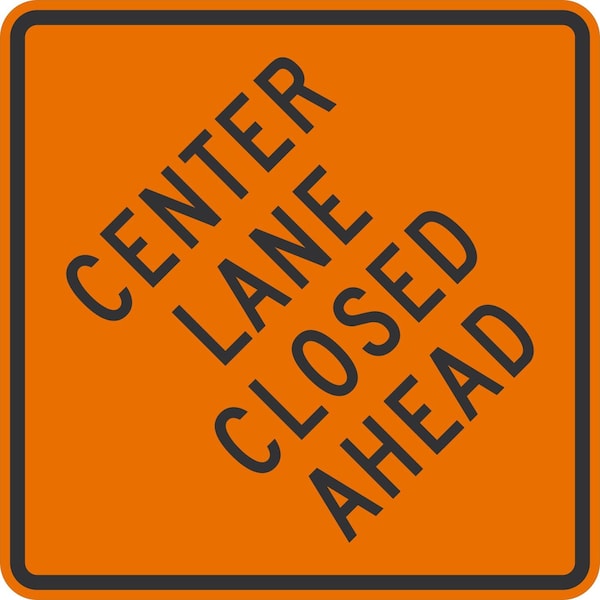 Center Lane Closed Ahead, 30x30, Diamond Grade, Orange