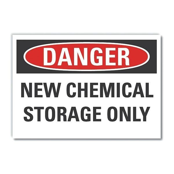 Chemical Storage Danger Label, Horizontal Rectangle, Number of Printed Sides 1, English, Sign Format Traditional OSHA, Sign Legend New Chemical Storage Only, Sign Legend Background Color White, Sign Legend Style Text