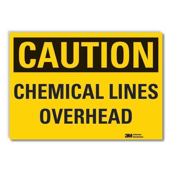 Chemicals Caution Reflective Label, Horizontal Rectangle, Number of Printed Sides 1, English, Sign Format Traditional OSHA, Sign Legend Chemical Lines Overhead, Sign Legend Background Color Yellow, Sign Legend Style Text