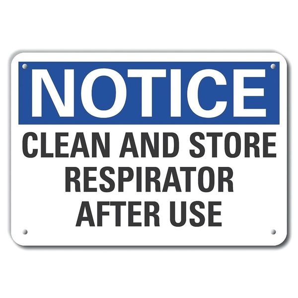 Reflective Respirator Required Notice Sign, Horizontal Rectangle, Number of Printed Sides 1, English, Sign Format ANSI/OSHA Format, Sign Legend Clean And Store Respirator After Use, Sign Legend Background Color White, Sign Legend Style Text