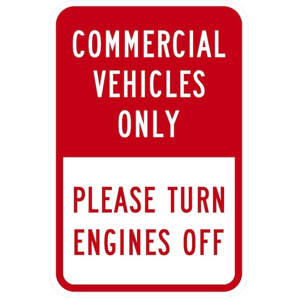 Commercial Vehicles Only Please Turn Engines Off, 12x18, Engineer Grade, White