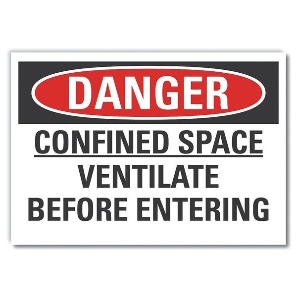 Confined Space Danger Label, Horizontal Rectangle, Number of Printed Sides 1, English, Sign Format Traditional OSHA, Sign Legend Confined Space Ventilate Before Entering, Sign Legend Background Color White, Sign Legend Style Text