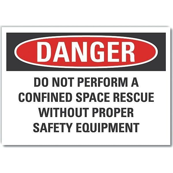Confined Space Danger Label, Horizontal Rectangle, Number of Printed Sides 1, English, Sign Format Traditional OSHA, Sign Legend Do Not Perform A Confined Space Rescue Without Proper Safety Equipment, Sign Legend Background Color White, Sign Legend Style Text