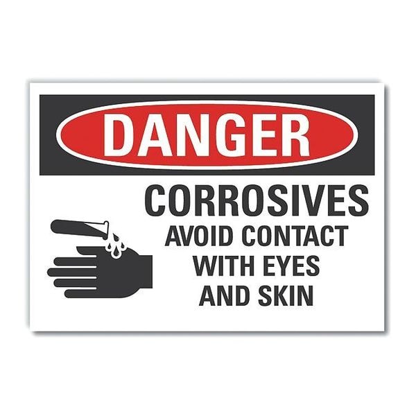 Corrosive Materials Danger Reflective Label, Horizontal Rectangle, Number of Printed Sides 1, English, Sign Format ANSI/OSHA Format, Sign Legend Corrosives Avoid Contact With Eyes And Skin, Sign Legend Background Color White, Sign Legend Style Symbol and Text