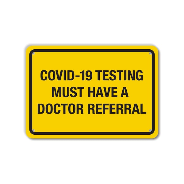 COVID-Related Sign, Legend: 'Covid-19 Testing Must Have A Doctor Referral ', Back Adhesive Decal, Reflective Engineer Grade, Size (WxH): 10x7