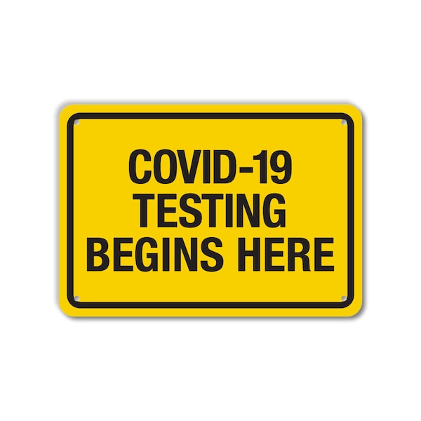 COVID-Related Sign, Legend: 'Covid-19 Testing Begins Here ', Back Adhesive Decal, Reflective Engineer Grade, Size (WxH): 10x7