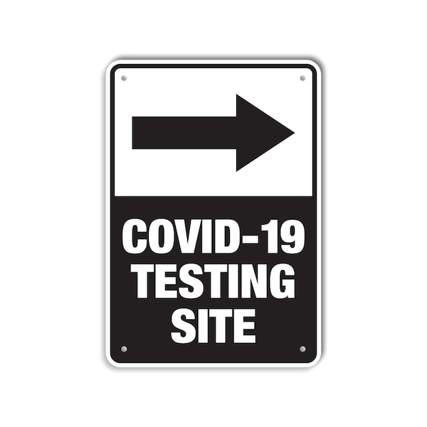 COVID-Related Sign, Legend: 'Covid-19 Testing Site w/right arrow ', Back Adhesive Decal, Reflective Engineer Grade, Size (WxH): 7x10