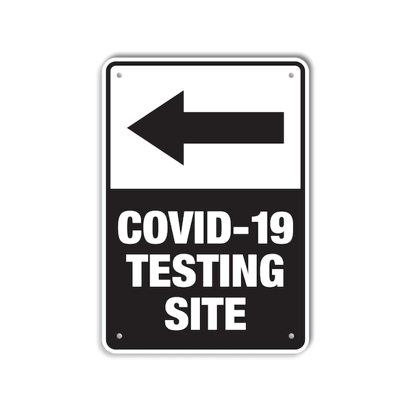COVID-Related Sign, Legend: 'Covid-19 Testing Site w/left arrow ', Recycled Plastic, Non-Reflective, Size (WxH): 10x14