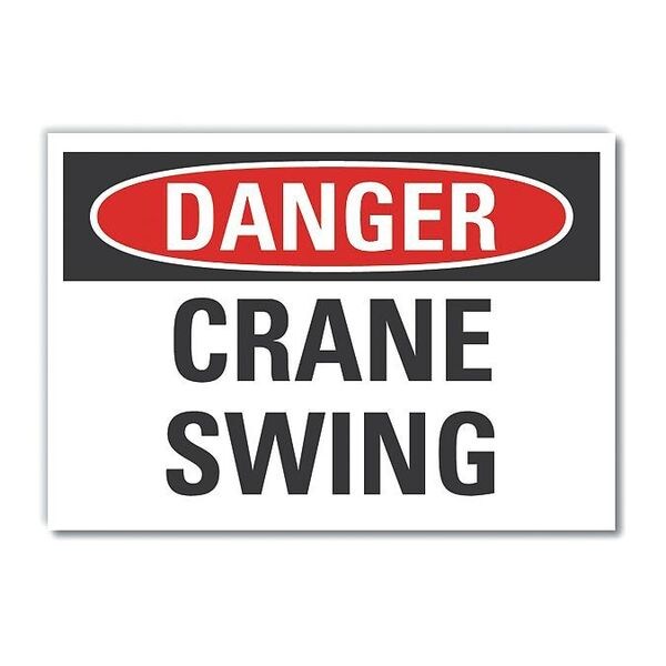 Crane & Hoists Danger Label, Horizontal Rectangle, Number of Printed Sides 1, English, Sign Format Traditional OSHA, Sign Legend Crane Swing, Sign Legend Background Color White, Sign Legend Style Text