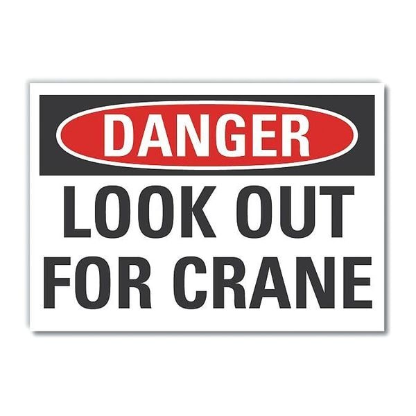 Crane & Hoists Danger Label, Horizontal Rectangle, Number of Printed Sides 1, English, Sign Format Traditional OSHA, Sign Legend Look Out For Crane, Sign Legend Background Color White, Sign Legend Style Text