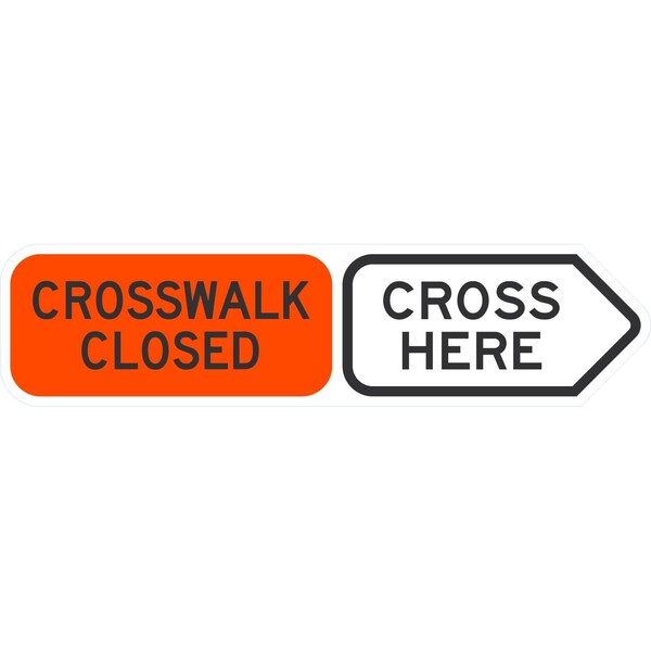 Crosswalk Closed, Cross Here, 24x6, Diamond Grade, White