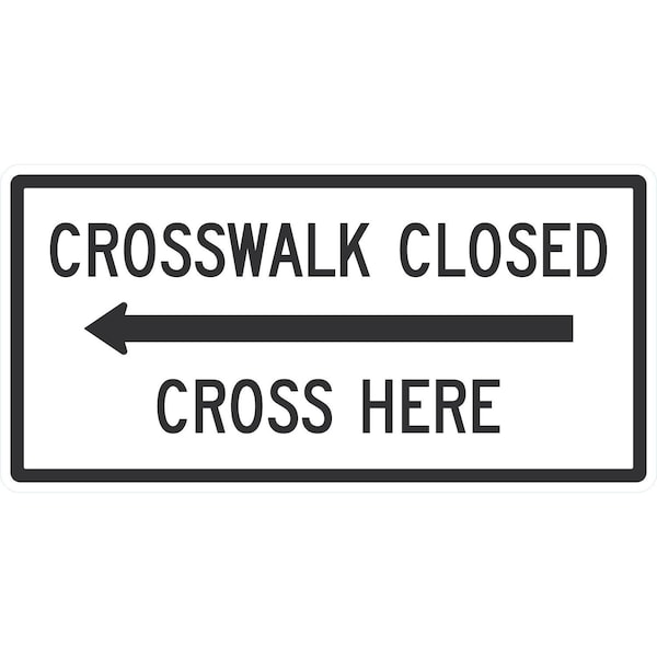 Crosswalk Closed Cross Here (with Left Arrow), 48x24, Diamond Grade, White