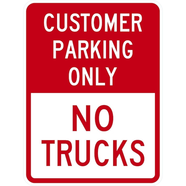 Customer Parking Only, No Trucks, 18x24, Non-Reflective, White