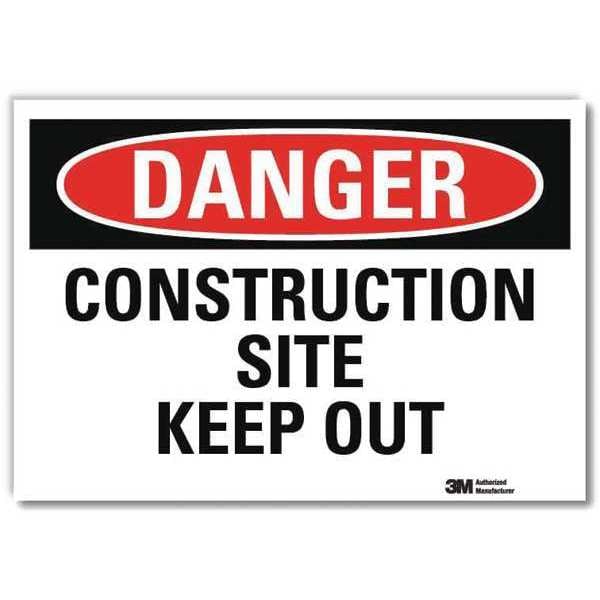 Danger, Construction Site Keep Out, 7" W x 5" H, Rectangle, Vinyl (Discontinued)