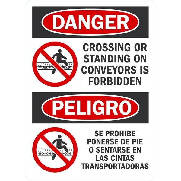 Danger Crossing Or Standing On Conveyors Is, 10x14, Non-Reflective, White