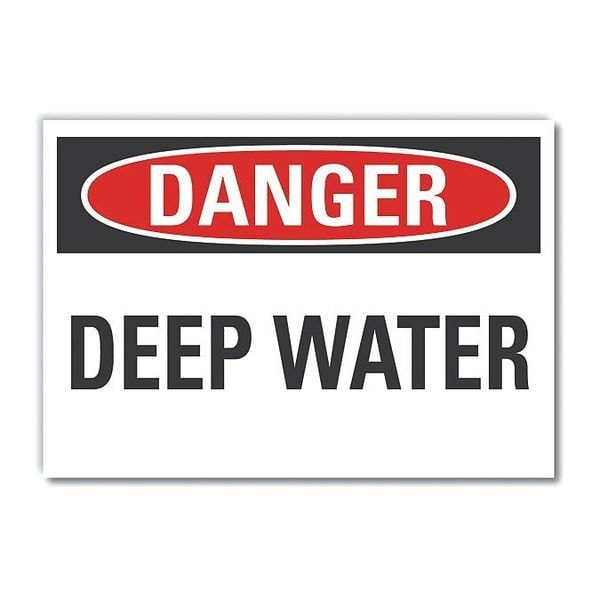 Water Safety Danger Label, Vertical Rectangle, Number of Printed Sides 1, English, Sign Format Traditional OSHA, Sign Legend Deep Water, Sign Legend Background Color White, Sign Legend Style Text