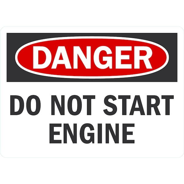 Danger Do Not Start Engine, 7x5, Non-Reflective, White