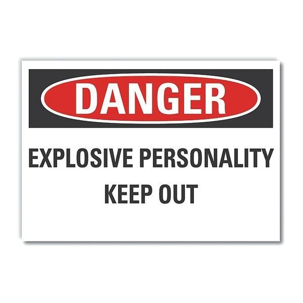 Danger, Explosive Personality Keep Out, 14 in W x 10 in H, , Polyester, LCU4-0507-ND_14X10