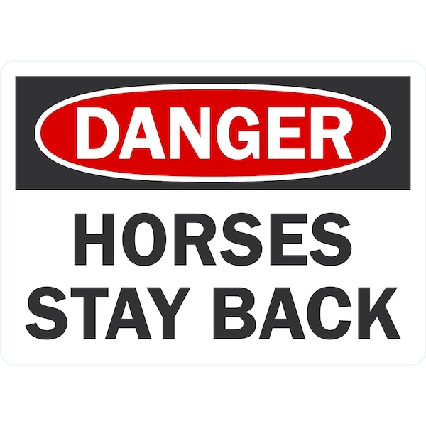 Danger Horses Stay Back, 7x5, Non-Reflective, White