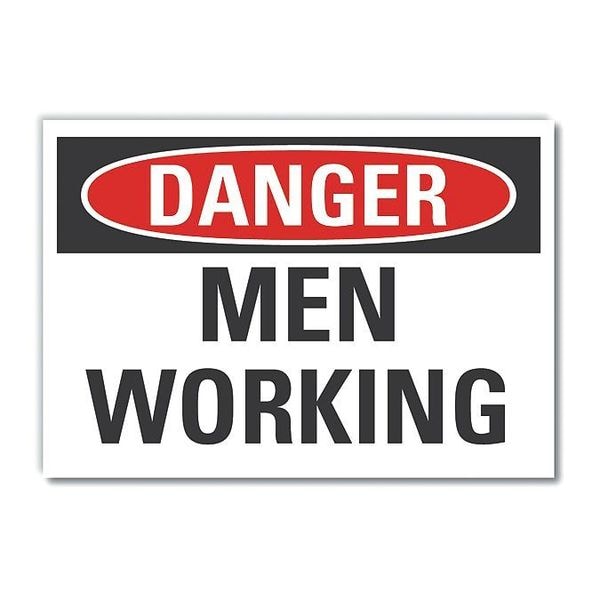 Men Working Danger Label, Horizontal Rectangle, Number of Printed Sides 1, English, Sign Format Traditional OSHA, Sign Legend Men Working, Sign Legend Background Color White, Sign Legend Style Text